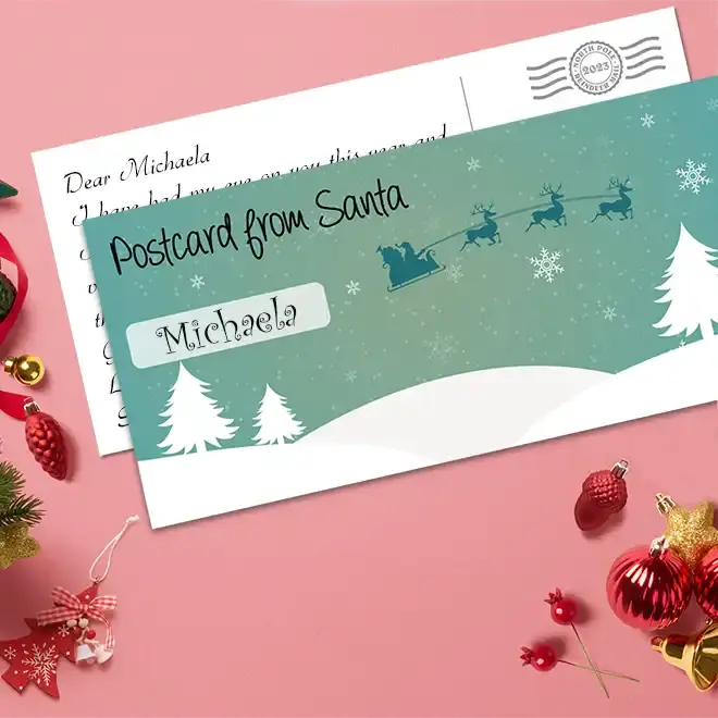Create a personalised postcard from Father Christmas to your kids - postmarked from the North Pole! Simply personalise one of our designs, or be creative and create your own design.
